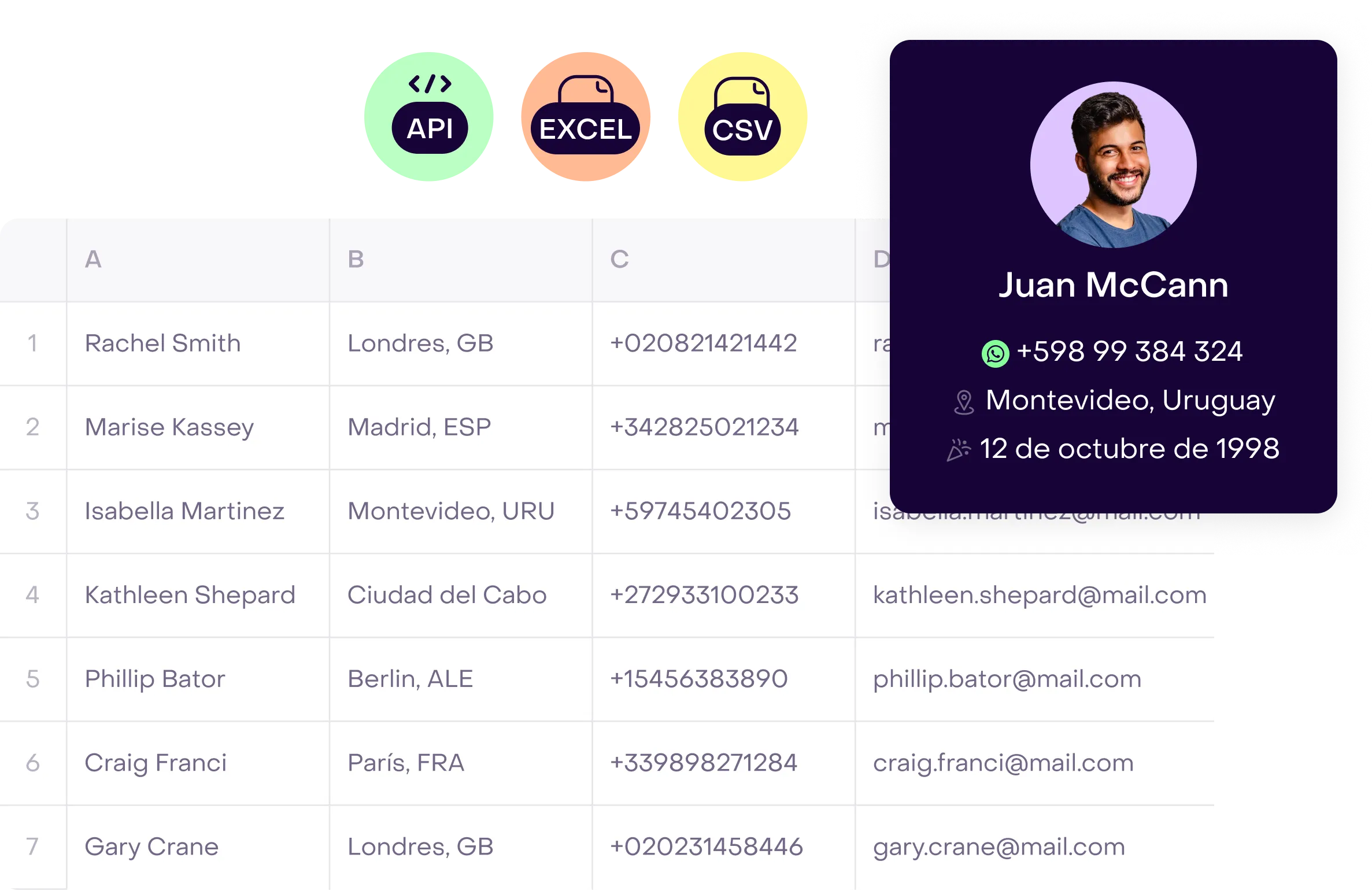 Importar datos de clientes es realmente fácil con Hellotext. Nuestra plataforma permite hacerlo desde archivos CSV, Excel y a través de API, garantizando que tengas toda la información que necesitas al alcance de tu mano.